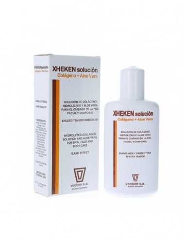 XHEKEN SOLUCIÓN es un tratamiento facial y corporal diseñado para combatir las arrugas, el envejecimiento, la flacidez y la sequedad de la piel. Ofrece un efecto tensor inmediato y proporciona alivio, rehidratación y normalización de la piel que ha sido enrojecida por la exposición solar. Además, protege la piel contra factores agresores climáticos, químicos y contaminantes. También está indicado para la protección y fortalecimiento del cabello.